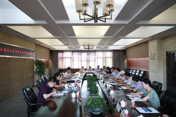 本网讯6月25日,根据省教育厅统一部署,由温州科技职业学院党委副书记施端银担任组长的省高校安全检查组一行5人来我校检查指导工作。校党委副书记夏晓军、相关职能部门负责人、二级院系党总支书记参加汇报会和反馈会并陪同检查。