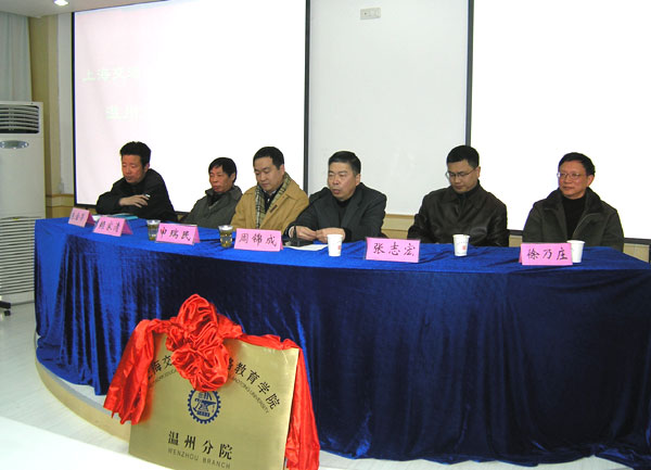 周锦成院长首先致辞。他说上海交通大学网络教育学院温州分院的成立是我院成教学院办学史上又一件大事。我院通过与上海交通大学等知名院校能够提高自身的知名度,我院分院也定会竭尽所能办好这个学院,为温州成人教育事业做出贡献。
