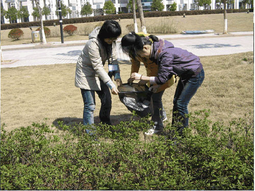 我院社区团工委开展雷锋月活动——“绿韵”校园活动
