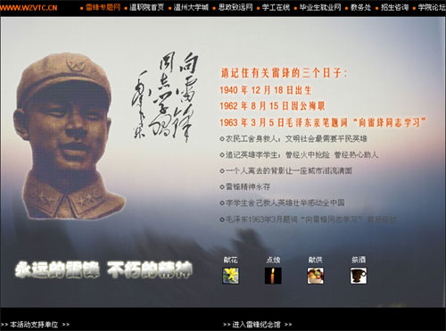 我院思维工作室在校园网开通“网上祭英烈——雷锋月专题”网