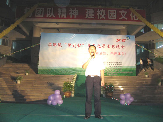 在工商管理系、财会系、计算机系团学组织的精心筹备下,在全院团员青年的共同努力下,在伊利实业集团股份有限公司的真情资助下,温职院“伊利杯”青春之星文艺晚会如约而至,值此欢乐时光,我谨代表共青团温州职业技术学院委员会对本次活动的胜利举行表示热烈的祝贺,对伊利公司的大力支持表示衷心的感谢,对为本次活动辛勤工作的广大团员青年表示诚挚的问候!