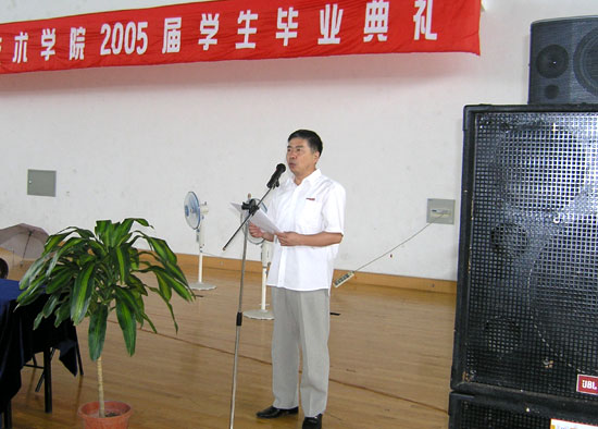 6月20日,我院在体育馆二楼隆重举行2005届毕业典礼,院长周锦成勉励毕业生们要发扬勤学慎思的求学精神,不断学习,勤于实践,勇于创新;要形成爱岗敬业的优良作风,脚踏实地,扎实苦干,自强不息。他希望同学们经常与学校、与你们的老师保持联系,一如既往的支持学院的发展和建设,当事业有成时,向母校报喜。