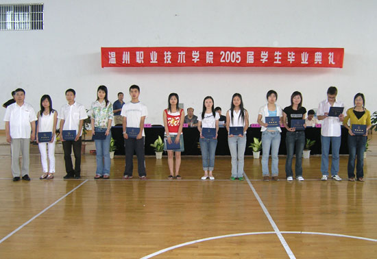 “千六桃李今同雁序,万里云天待看鹏飞”,2005届毕业生顺利拿到了毕业证书,这个是他们的大学学习的终点,同时也是他们另一段人生的起点。我们有理由相信经过在温州职业技术学院这三年的学习生活和磨练,他们会是一批时代的弄潮儿,会是母校的骄傲。