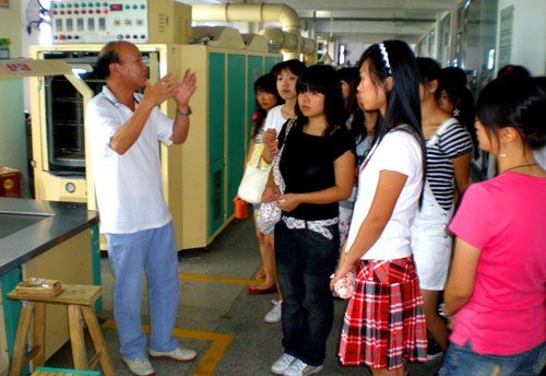 9月12日,重庆学生第一天走进温职院的课堂,开始了他们东部求学的历程。第一天上课,这些“西部大学生”就感受到了温州职业技术学院别具特色服装生产性实训基地。宽敞的教室,即是工厂,又是课堂,一边是名欧衬衫有限公司,另一边就是学生实训上课的场所。学生遇到实践训练中的“难点”,就马上可以向企业的员工进行请教。而同学设计的服装作品一旦被企业看中,马上就可以投入生产,“学生即学徒,员工即师傅”的教学理念让西部来的学生感到特别新鲜。负责这个班管理工作的重庆工贸职院服装专业教师欧阳晓龙老师说:“这种实训条件实在太好了。有这种真刀实枪的操作,我们学生的就业前景就乐观多了。在温州,就业机遇也相对要多一些。”重庆的晓龙老师此行除了带学生来温州之外,他自己也将在我院轻工系进行为期一年的挂职学习锻炼,学习我院先进的教学方式和温州特色的办学理念,也参与生产性实训基地中企业新技术的开发。