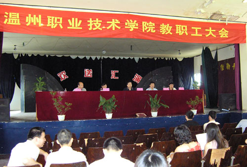 9月3日上午,我院在分院大礼堂召开新学期教职工大会,学院领导周锦成、倪集崇、吴金法、夏晓军、兰玉景及全体教职工出席了会议。周锦成院长在会上要求大家在新的一学期要以邓小平理论和“三个代表”重要思想为指导,深入开展保持共产党员先进性教育活动,以评估优秀为标准,以全国示范为目标,全面启动教育部人才培养工作水平评估的迎评工作,厚德长技,举品牌旗,走特色路,全力打造高职教育的质量品牌。