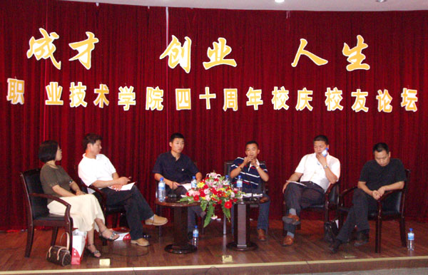 “要想创业,在校就得有长远的职业规划” 、“机遇往往是偏爱有准备的人” 、“人要活到老学到老”、“我们无论从事何种职业,千万不要眼高手低,一定要脚踏实地,一步一个脚印”, 嘉宾们为学弟学妹提出了许多良好的建议,引起了在场的在校学子的强烈共鸣。