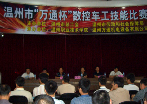 10月15日,由温州市总工会、温州市劳动和社会保障厅联合举办的温州市 “万通杯”数控车工技能大赛在全国示范性数控实训基地——我院数控实训中心拉开序幕,来自全市各县、市区、高校的30名数高手选手参加了本次大赛。我院作为承办方为了避嫌没有组队参赛。