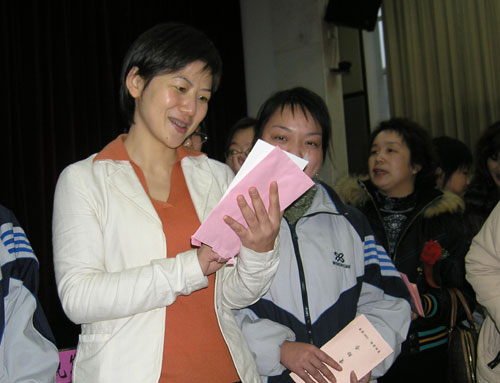 作为活动的发起者——鹿城区女企业家协会表示要将“金瓯工程”的爱心接力棒一级级传下去,让贫困生能够充分感受到社会的温暖和爱心。我院的贫困生代表尹多芬在会上道出了贫困生的心声:要加倍努力,学好文化知识,掌握专业技能,将来走上社会后以博大的胸怀和仁爱之心回报社会。结对现场还举行了人文系“雷锋岗”和“爱心岗”的交接仪式。