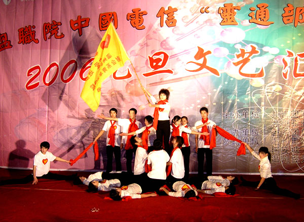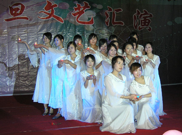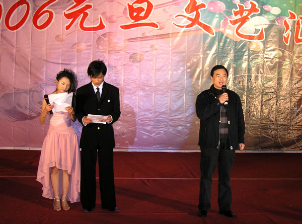 喜迎春风拂绿柳,笑迎玉犬送金鸡;今朝辞旧岁,明朝气象新。12月29日晚,精心策划,编排的2006年元旦晚会如期与大家相约,体育馆内张灯结彩、掌声震天,透出浓郁的节日气氛。学院党委副书记倪集崇到场致辞,总结了一年来的各项成绩和教学成果,并鼓励全院师生充满自信,以更饱满的热情投入到新一年的工作学习中。倪副书记还和同学们一起欣赏了精彩的节目。