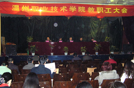 周院长在报告中还强调,学院下一年度工作将按照迎接全国优秀高职院校评估而展开,全院上下必须团结一致,脚踏实地、稳步推进事业发展。