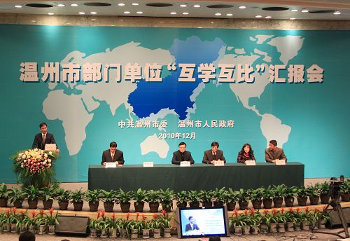 据了解,此次“互学互比”活动是温州市委、市政府在前阶段各县(市、区)和功能区"互看互学"的基础上组织开展的,活动以三场汇报会的形式,以"学先进、找差距、比干劲、创业绩"为主要内容,营造"你赶我超"的氛围,为温州发展再次提速。