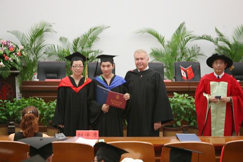 随后,Trevor Williams院长为王若曦同学颁发了优秀毕业生奖。双方院领导为同学们颁发了双方毕业文凭。