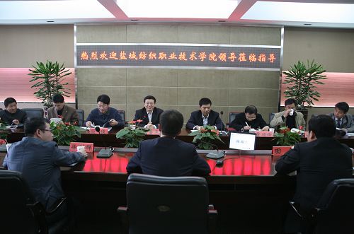 11月15日,盐城纺织职业技术学院党委书记黄志纯、副院长张林龙一行就示范建设工作来我院考察。座谈会在行政楼三楼会议室召开,丁金昌院长及相关职能部门负责人出席座谈会。