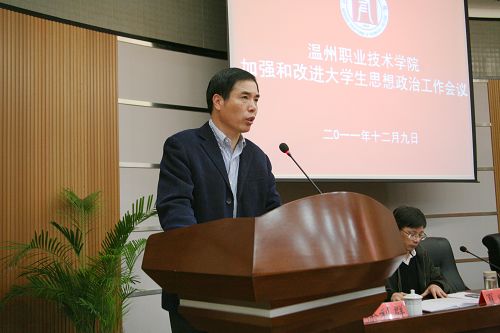 会上,各系优秀班主任代表以各自工作中的实际经历作为案例进行了互相交流和学习,学生处副处长苏跃飞就《温州职业技术学院班主任工作条例》做修改说明。