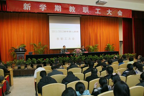 2月12日上午,我院在学术报告厅召开新学期教职工大会。学院领导班子和全体教职工参加了大会,大会由院党委书记陈光天主持。