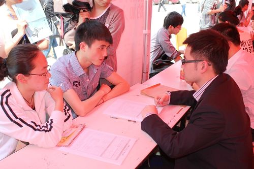 在信息楼广场则是毕业生与企业进行人才对接双向选择的热闹场景,共有78家用人单位应邀参加本次成果展和人才推介会,为毕业生提供1000多个就业岗位。法派集团、人本集团、红蜻蜓鞋业股份有限公司、中国蜘蛛王集团等30余家温州百强企业也在现场设摊纳贤。