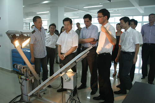 陈一新书记一行在我院党政领导班子的陪同下,首先视察了校内实训基地及科技研发大楼。视察中,我院领导向陈一新书记汇报了我院校园形态、基地建设等方面的情况。陈书记对我院的基地建设模式表示充分肯定,并对我院多年来为实行校企合作、服务地方经济社会发展所作出的努力进行了肯定。
