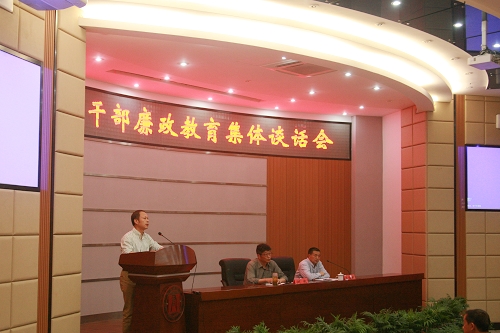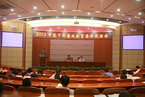 5月15日下午,我院召开2013年度干部党风廉政教育集体谈话会,学院纪委书记何忠出席并作重要讲话,学院纪委委员、院在职副处及以上中层干部、院级及以上科研院所负责人和各党总支(直属支部)纪检委员参加会议。