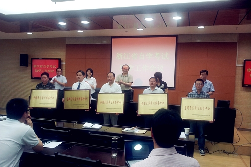 5月15日下午,高等教育自学考试“全国示范学习服务中心”授牌仪式在浙江省教育考试院4楼会议室隆重举行。教育部考试中心党委书记刘军谊,教育部考试中心自考助学管理处副处长沈漪,浙江省教育考试院院长葛为民,浙江省教育考试院副院长刘宝剑,浙江省教育考试院余海明处长等出席仪式,并为获得“全国示范学习服务中心”称号的学校授牌。