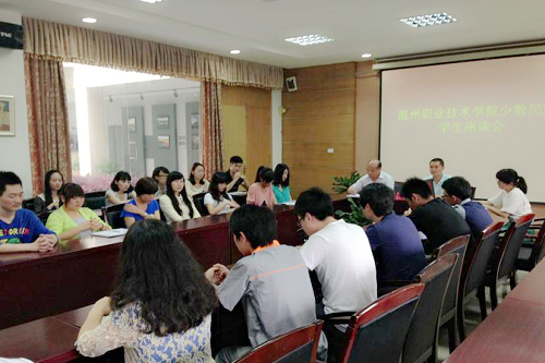 5月22日下午,我院在知行楼一楼会议室召开少数民族学生座谈会。温州市少数民族联谊会会长、学院党委委员、副院长兰玉景,学工部部长、学生处处长叶吉波出席会议,各系辅导员代表、少数民族贫困学生代表30多人参加座谈。会议由学生处处长叶吉波主持。