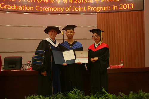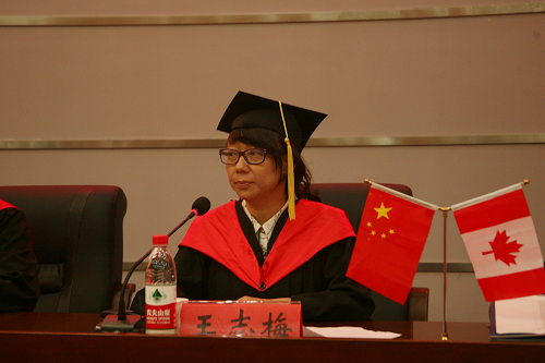 随后,教务处处长张宝臣宣读了毕业生名单,中加双方的院领导为毕业生亲自颁发了两校的毕业证书并合影留念。