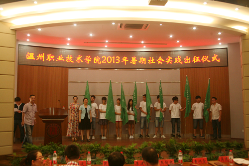 7月2日上午,学院2013年大学生暑期社会实践出征仪式在正德楼罗山厅隆重举行,这标志着我院2013年大学生暑期社会实践活动正式启动。副院长王向红,学生处处长、学工部部长叶吉波,各系党总支书记、团总支书记和暑期社会实践团队指导教师代表及学生代表出席了本次出征仪式,仪式由叶吉波部长主持。