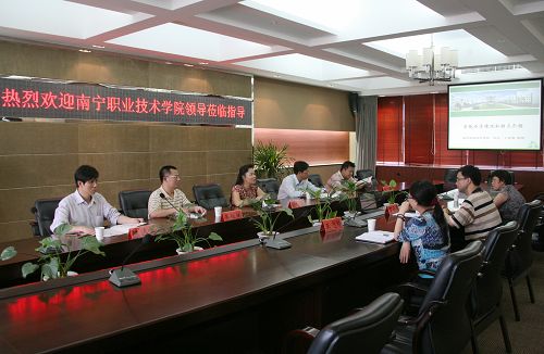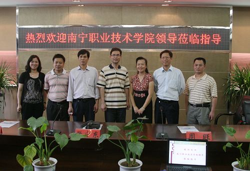 5月10日下午,南宁职业技术学院副校长张宁东一行5人来我院考察交流。在学院院长丁金昌的陪同下,张宁东一行参观了我院的实训基地,并于行政楼301会议室进行了座谈交流。