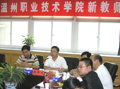 党委书记周锦成(图中)鼓励新教师正确认识高职教育、认识学生、认识自我