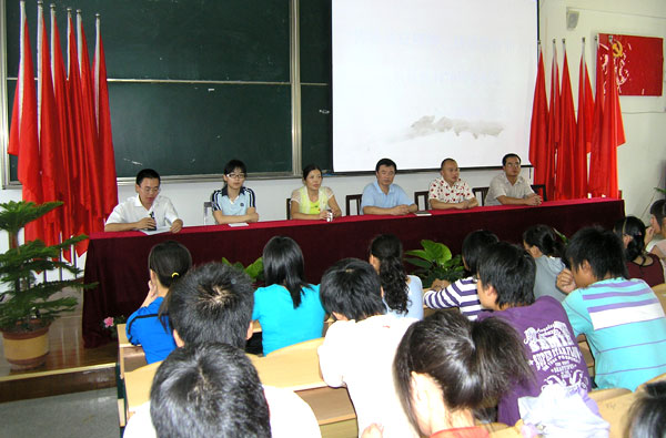 在诗歌朗诵会之前,还举行了纪念长征胜利70周年系列活动启动仪式暨工商系青年理论学习会第四期开班典礼。院党委副书记倪集崇到会祝贺并讲话。倪副书记在讲话中勉励广大同学珍惜在校的良好的学习机会和学习条件,努力学习,为将来走上社会打好坚实的理论基础。倪副书记希望广大同学树立正确的学习目的,掌握正确的学习方法,要系统的、全面的、历史的、辨证的、发展地看问题,传承长征精神,在学习、生活上不怕艰难、积极进取,努力把自己培养成有理想、有道德、有文化、有纪律的“四有”新人。