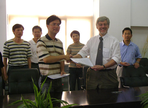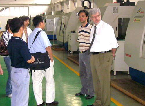丁金昌院长、夏晓军副院长会见了客人一行。丁院长向客人介绍了我院的基本情况和发展规划。詹姆士·理查德博士也就合作意向与丁院长进行了交流。双方探讨了合作办学的途径和方法,并就合作事宜达成了协议。随后学院领导还陪同客人,先后到我院机械系和计算机系实训基地、机房进行了参观考察。