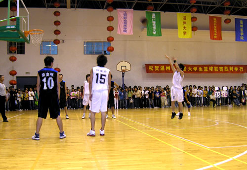 11月9日,在我院举行的温州市首届大学生体育运动会篮球比赛结束了第三轮比赛,我院在与夺冠呼声最高的温州大学代表队强烈碰撞中,充分发挥了水平,最后以三分优势击败了对手,扫除了夺冠路上最大的障碍,向冠军迈进了一大步。