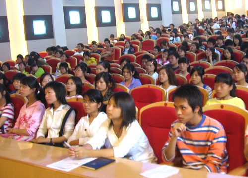 新生认真听取心理健康讲座