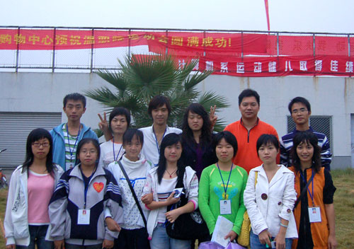 为运动会默默无闻工作的新闻工作室同学与指导老师(上排右二)合影