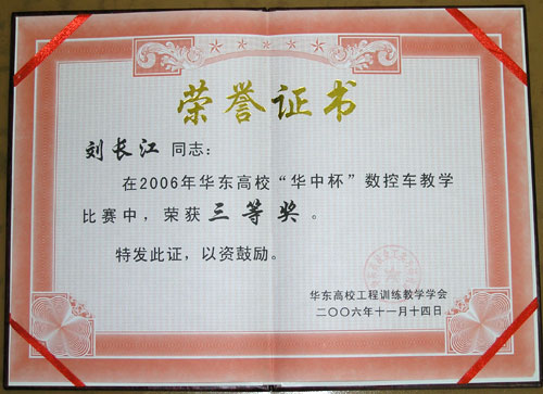 刘长江老师获“华中杯”华东地区高校教师数控车教学比赛三等奖