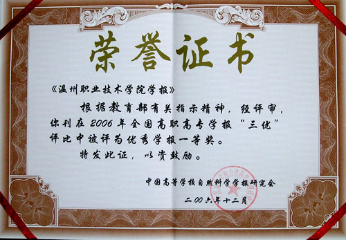 相关链接:浙江在线《温职院学报获全国高职高专优秀学报一等奖》
