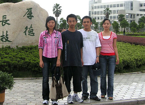 获得全国数学建模比赛一等奖的三名选手与指导老师项海飞合影(图右一)