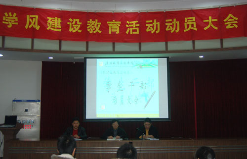 12月20日,以“创优良学风、建和谐校园”为主题的学分建设教育活动——学生干部动员大会在行政楼多功能厅召开。会上,夏晓军副院长指出,通过开展学风建设教育活动,树立“八荣八耻”社会主义荣辱观,坚持“以学生为本”,完善学生成才服务体系;认识创优良学风、建和谐校园的重要性和必要性,求真务实、真抓实干,做到思想落实、措施落实以及工作落实;强调学生党员、学生干部要在学风建设教育活动月中发挥模范带头作用。