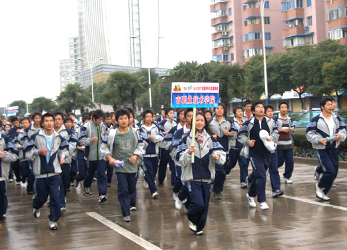 迎着元旦的缕缕晨风,沐浴着新年的第一场雨,伴随着雄壮的国歌声,坚定的步伐齐齐奔向充满希望的2007年。2007年1月1日,我院机械系组织学生参加了温州市2007年元旦升国旗仪式暨元旦健身跑活动。在嘹亮的乐曲声中,五星红旗在雄壮豪迈的旋律中冉冉升起,同学们一致向国旗行注目礼。伴随着激昂的国歌声,五星红旗迎着晨风,高高飘扬,在同学们心中更油然而生一种爱国之情。在新年的起跑线上,每位同学都充满了憧憬,心口都装满了希望。
