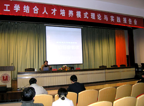 在讲座中,陈教授指出,目前我国高职院校发展不容乐观,必须认清从数量扩张向内涵建设转变的大形势,努力进行人才培养模式的创新。他说,工学结合人才培养模式是将课堂上的学习和工作上的学习结合起来,使学生将理论学习和实践相结合,从而加深对自己所学专业的认识,使学生看到学校中学习的理论与工作之间的联系,提高学习理论的积极性。在工学结合实践中,与成年人接触,学生加深了对社会人类的认识,清楚合作的重要性,开阔知识面,扩大眼界,还可以使学生提高自我判断能力,变的更加成熟,有助于学生就业选择。陈教授还强调,工学结合模式的基本操作方法主要是通过学校、企业和学生三方合作形式,注重质量管理、过程管理。