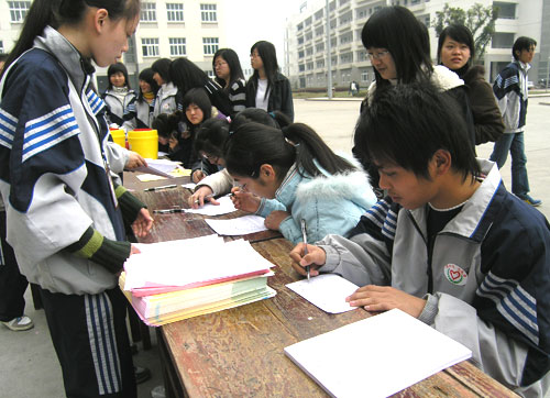在献血现场,同学们热情高涨,围在服务台前的人络绎不绝,不少同学已经都是多次参加献血活动,也有不少同学因为从媒体上知道最近温州血库异常紧张消息闻讯赶来。在采血车上,一位柔弱的女生看见医生大针筒吓得眼泪直流,但她害怕的同时却又勇敢地挽起衣服,采血的护士也深深为这一幕所感动。在采访,也发现几位带着些许遗憾的几位女生。电气系吕晓红已经是第二次报名参加献血活动,去年她因为体重没达到要求而没有献血成功。而今年,她又抱着试试看的心情早早来到献血现场,在填写了报名表格、验血合格后,她走进了采血车。但最后一关称体重时,她又被无情地“刷”了下来。晓红说:“自己非常想献血,但每次都是因为体重不过关,而没有献血成功。下次有机会,我再来试试。”尽管晓红遗憾地离开了献血现场,但她的热情却让在场的人十分感动。