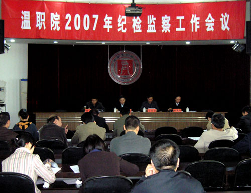 4月4日上午,我院在行政楼多功能厅召开了2007年纪检监察工作会议。会议由纪委副书记林建华主持。党委书记周锦成、院长丁金昌和纪委书记何忠出席会议,学院各党总支书记、纪检委员,各系(部)主任,成教学院、四方公司、各处室负责人参加了会议。