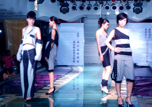 6月2日下午,我院轻工系二ОО七届毕业生服装设计、鞋样设计作品展在市区拉斯大维加斯的T形舞台崭露头角,学生们婀娜多姿的表演得到在场嘉宾的交口赞许,引起温州诸多企业界人士的关注。
