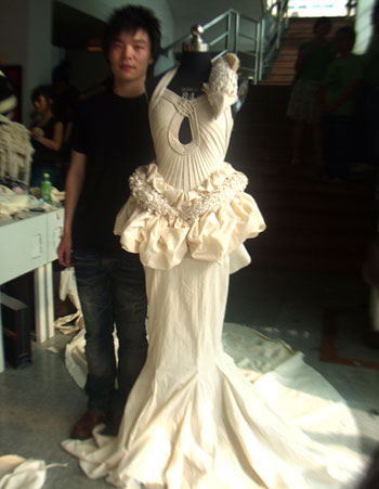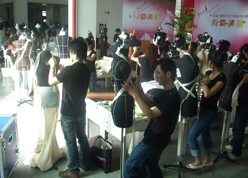 近日,我院轻工系服装专业学生参加了在温州大学举行的“嫁衣工坊”杯首届温州大学生服饰造型艺术设计大赛。在比赛中,我院选手表现抢手,让评委们留下了深刻的印象。其中,服装设计专业0503班陈文崇同学以作品《鱼跃》获得单人组第一名(二等奖),服装0504班的何洁彬同学以《羽扇纶巾》获得最佳设计奖。另外,何华婷同学的《童话第一章》、沈水娜同学的《蝶恋》获单人组入围奖,邹琴双、许丽丽的《秋的遗忘》获双人组入围奖。
