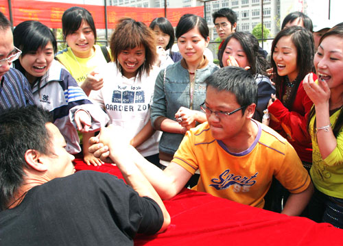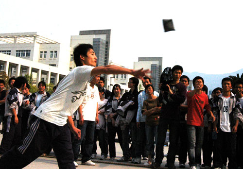 民俗体育活动是中华文明的一个有机组成部分。几年来,我院工商系以“传承民族文化、弘扬体育精神、快乐健身”为主题,挖掘推广民俗体育活动,使之成为学院校园文化建设的一道独特风景。从2003年开始,工商系开始收集、整理民俗体育文化材料,组织各种民俗体育活动,举办民俗体育运动会。师生共同参与,搭建民俗体育平台,以民俗体育活动锻炼体魄,以民俗体育精神陶冶情操,民俗体育文化氛围渐浓,形成了独特的校园文化品牌。在收集的103项民俗体育项目中,我院已经将75项形成比赛规则而在校园中蓬勃开展起来。此外,我院还建立了民俗体育运动采集实践队、建立民俗体育俱乐部、建立民俗体育项目数据库等。我院宣传部部长朱金荣说:“在校园中,平时见多也玩惯了篮球、足球、排球等竞技体育项目,现在大学生们玩这些富有奇异的民俗特征和厚重的文化内涵的民俗体育运动项目特别带劲,让学生在竞技体育外享受到了体育所带来的魅力和快乐。民俗体育作为校园文化建设载体融入校园能使当代青年学生找寻回传统文化,传承传统文化。”