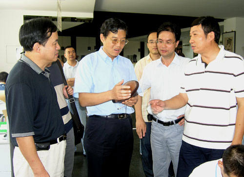 早有所闻我院的实训基地建设很有特色,徐纪平副市长一走进我院校门便提议要先到我院的实训基地走一走。学院领导丁金昌、夏晓军、蓝玉景、王向红陪同副市长视察我院的浙江省高职高专示范性实践教学基地——制鞋工艺鞋机实训中心、国家级实训基地——数控实训中心、建筑实训中心等生产性实训基地、温州市模具重点实验室等。在视察中,副市长还与建筑系学生、鞋机实训基地中的研发“师傅”进行了亲切地交谈。