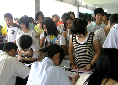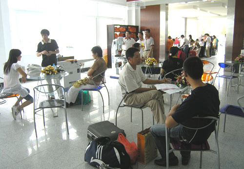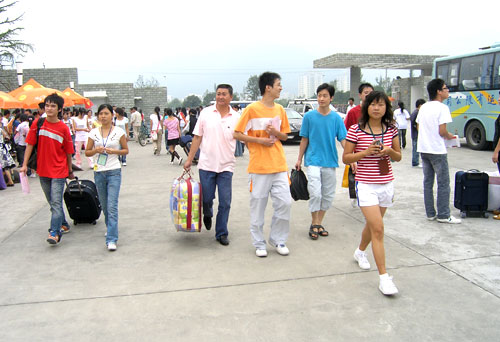 9月9日,温州职业技术学院2007级3000多名新生纷纷来校报到。为让新生能以最简便的方式注册入学,我院各系安排了大量志愿者进行全程“陪同”和流水线服务,还提供许多人性化的服务,如建工系为家长们开辟了休息区,各系都设置了行李存放点、政策咨询处、团委开通了全天候广播服务、四方公司把医务中心搬到了报到现场等。