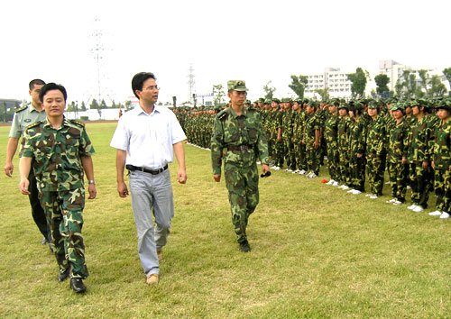 丁金昌院长与温州军分区政治部领导一同检阅了军训队伍