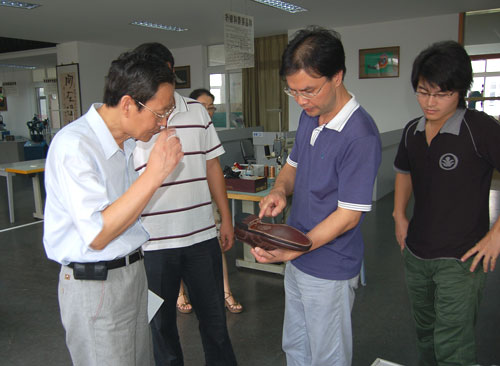 在会客室,丁金昌院长向客人介绍了学院的发展历史、办学历程、专业设置等基本情况,着重介绍了学院的办学特色以及本次入选国家示范性高职院校建设单位的重要任务、发展目标等,并希望加强与兄弟院校间的沟通交流,吸取经验优秀经验,促进学院发展。。随后,邵院长一行还兴致勃勃地参观了我院鞋机、数控等几个实训基地。