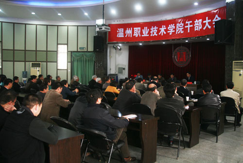 会上,省委组织部干部三处副处长叶志航宣布省委任命陈光天同志为我院新一任党委书记。省委教育工委委员、干部处处长丁天乐同志作了重要讲话,他希望温州职业技术学院能破解学校发展难题,推进学院新发展,做好服务工作,为温州区域经济发展做出贡献,坚持可持续发展,加强内部管理,力争在各个方面走在全省高职院校的前列。随后,新任党委书记陈光天同志在会上作了表态发言。