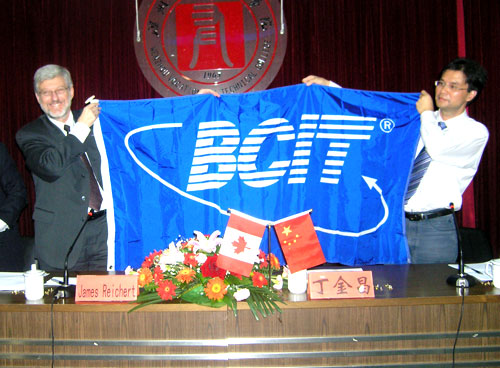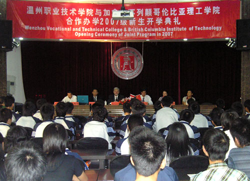 10月25日下午,温州职业技术学院与加拿大不列颠哥伦比亚理工学院(British Institute of Technology,以下简称BCIT)开展的中外合作办学项目——中加班举行开学典礼。我院院长丁金昌教授和远道而来的BCIT副院长理查德博士出席了开学典礼。我院副院长王向红主持此次开学典礼。